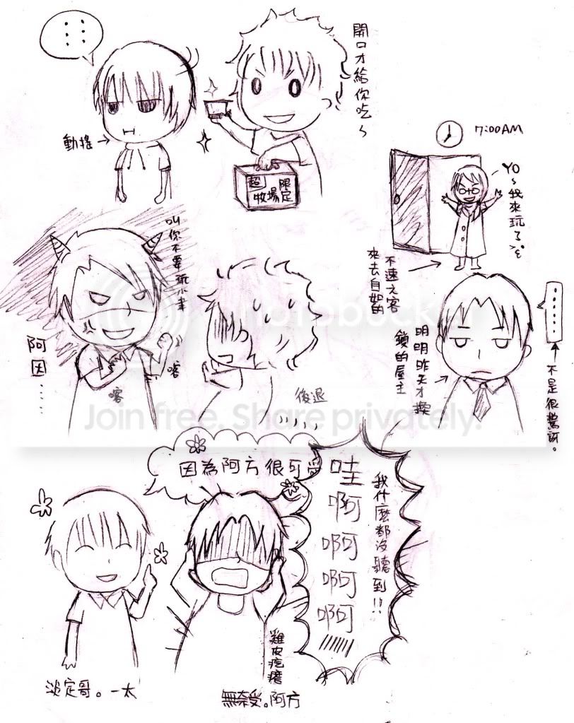 「才不是!妳閉嘴啦!」看著隔壁仍舊掛著笑容的一太,阿方趕緊阻止自家妹妹再繼續爆料下去,不知道為什麼,好友臉上那個好像在想什麼又可能是自己想太多的微笑讓他感到某種無名的壓力。